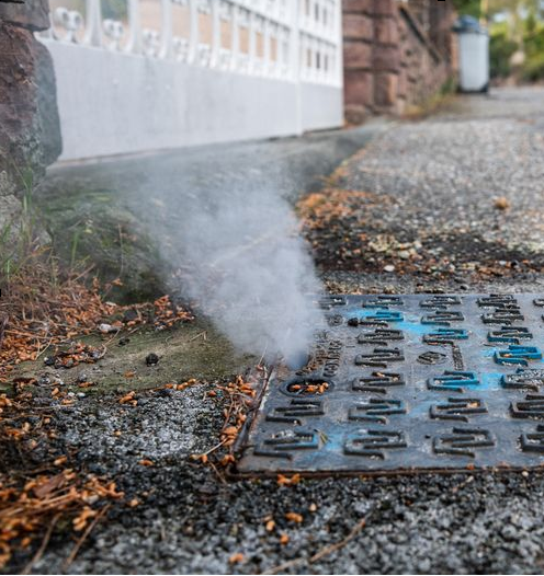 De la fumée spécialement conçue à cet usage est injectée dans le réseau public d’assainissement.