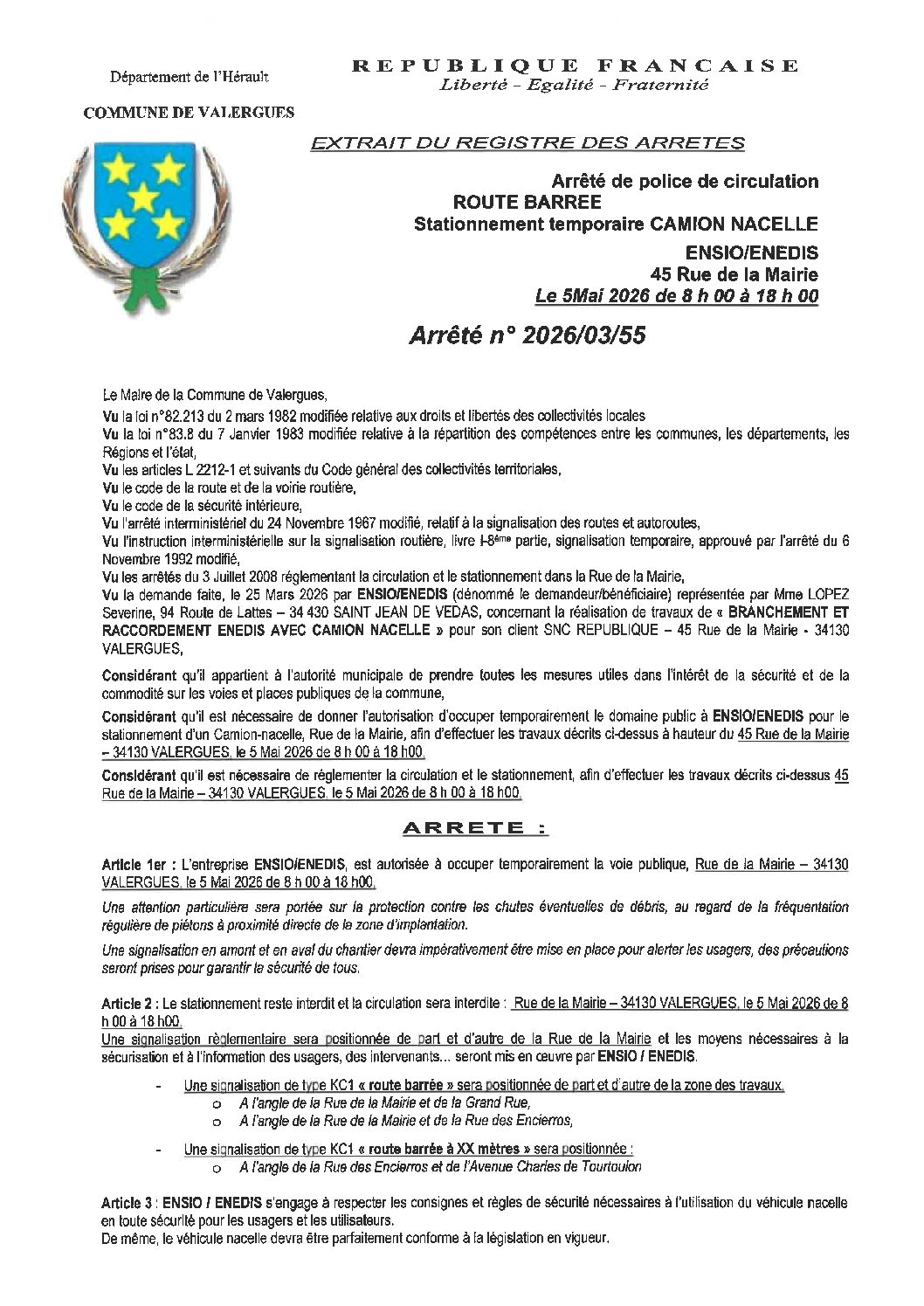 Mairie, Av. Ch de Tourtoulon, Av. des Pins, Rue des Encierros et Rue de la Mairie du 7 au 22 Avril 2026 inclus