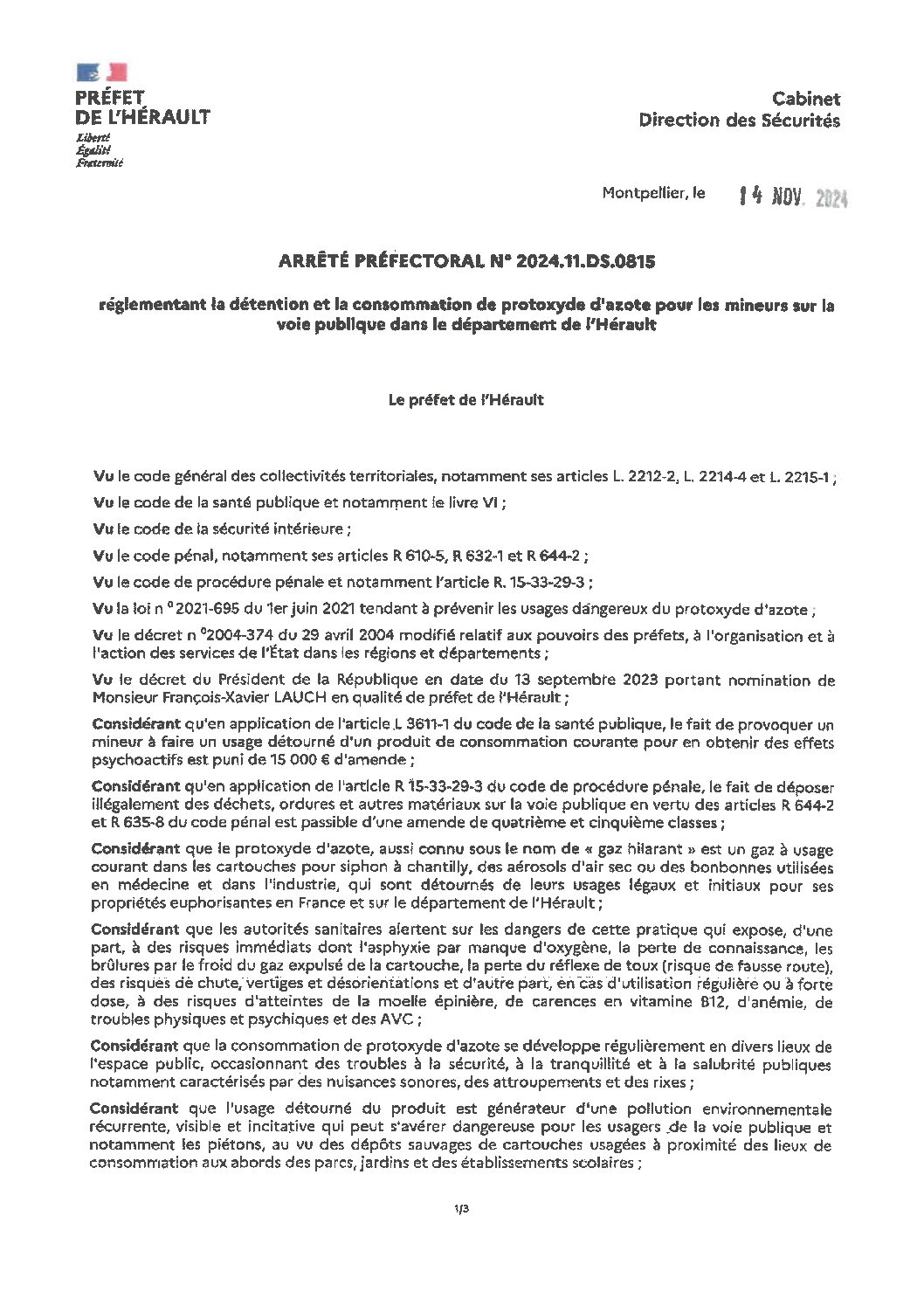 Arrêté Préfectorale_Détention et consommation de protoxyde d’azote pour les mineurs sur la voie publique